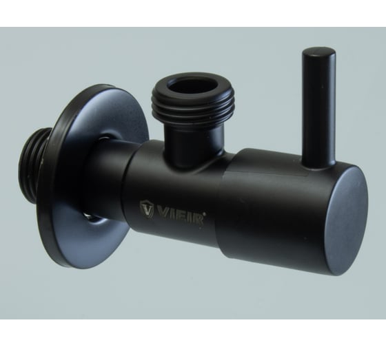Кран угловой ViEiR с отводом, 1/2 х 1/2, нержавеющий, черный, круглый, запорный, для подключения техники и смесителей VER69-C