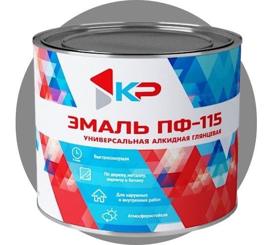 Краска быстросохнущая, атмосферостойкая КР ПФ-115 серая, 1,8 кг 4610044290761