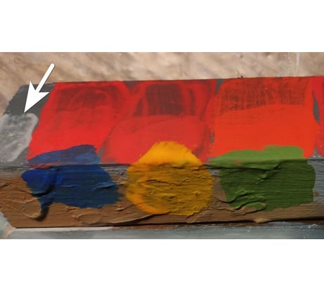 Краска понравилась - удалось получить достаточно насыщенные цвета; действительно матовая; сохнет недолго; прочность слоя нормальная. Брал универсальные колеры разных производителей. Если нужно немного краски, можно подобрать или смешать художественные. Если нужен пастельный оттенок или темный ненасыщенный, проще взять за основу белую краску или базу А. Если нужны яркие цвета и объем - только прозрачная база С. При колеровке надо сначала мешать маленькие порции и делать пробные выкрасы, т.к. акриловые краски при высыхании меняют цвет + разные цвета дают разную укрывистость, для некоторых может потребоваться 2 или даже 3 слоя. Эта краска при высыхании не совсем прозрачная (не как лак), оставляет небольшой светлый налет при высыхании (белая стрелка на фото). Но конечный результат после колеровки меня полностью устроил.