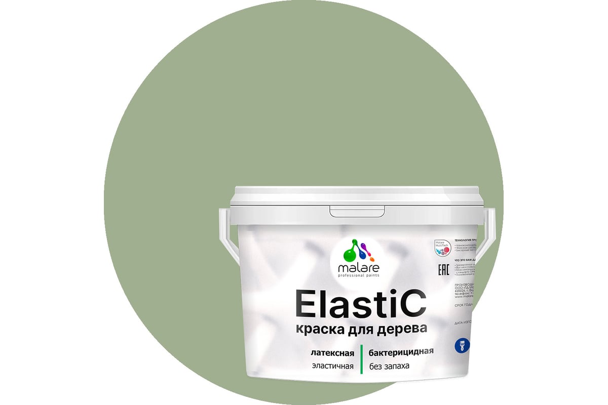 Краска для деревянных поверхностей MALARE Elastic универсальная, с антисептическим эффектом, матовая, лиственный зеленый, 10 кг 2038301547137