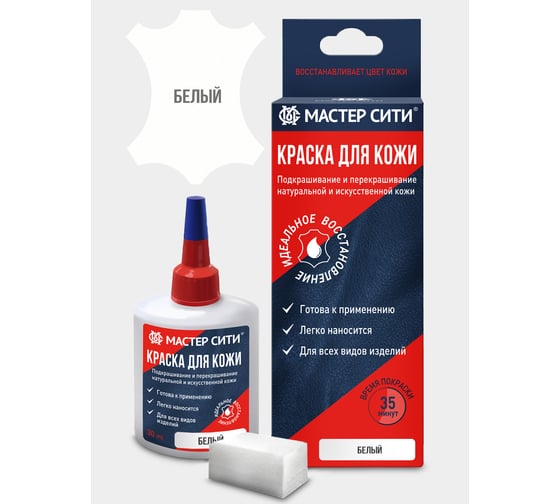 Краска для белой обуви и подошвы Мастер Сити предназначена для обновления цвета белой обуви и подошвы. Белая краска для обуви эффективно закрашивает потертости, мелкие царапины, черные полосы, придает белизну пожелтевшей подошве. Мелкопористая губка обеспечивает равномерное нанесение краски на поверхность. Благодаря высокому содержанию пигмента краска обладает высокой укрывистостью, для закрашивания достаточно нанести 1-2 слоя. Краска устойчива к влаге и грязи, быстро сохнет. Подкрашивать изделие можно по мере необходимости. Красить на вещах из гладкой натуральной и искусственной кожи, подошве обуви. Не используйте краску для замши, нубука и кож деликатной выделки. Краска для кожи создает прочный эластичный поверхностный слой, устойчивый к перепадам температур, влаге, выцветанию, истиранию и динамическим нагрузкам. Краска для кожи на водной основе практически не имеет запаха.