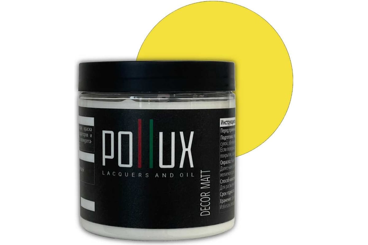 Краска для мебели без запаха матовая быстросохнущая для кухни / дерева / декора акриловая Pollux Decor Matt, объем 500мл, цвет цинково-желтый (RAL 1018) PDM-1018-05L