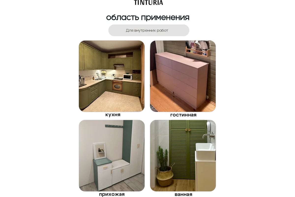 Расход на однослойное покрытие: 90-120 г/м², в зависимости от метода нанесения и подготовленности поверхности, расход краски может меняться. Наслаждайтесь визуальной эстетикой и качеством меловой краски TINTURIA! Через 14 дней после нанесения окрашенная поверхность выдерживает влажную уборку с применением неабразивных моющих средств.