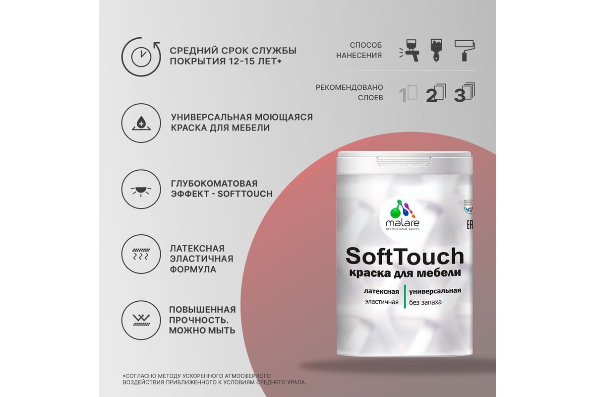 Краска для мебели, кухонных фасадов MALARE SoftTouch матовая, гранитный, 1 кг 2036773367833