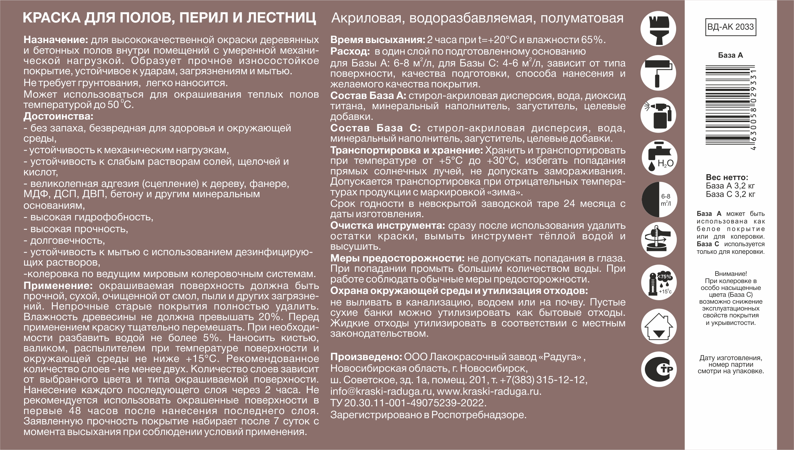 Краска для полов, перил и лестниц Радуга белая база А 2,7л флор_2,7л