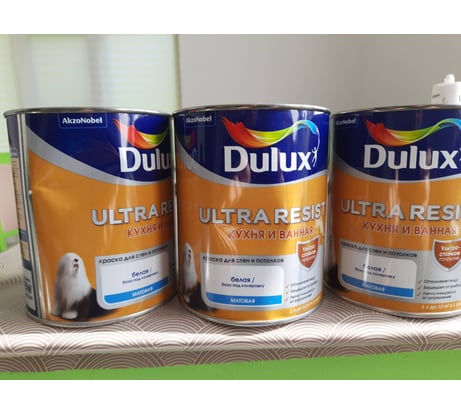 Краска для стен и потолков DULUX ULTRA RESIST КУХНЯ И ВАННАЯ матовая база BW 1 л 5757360 для интерьеров, которые подвергаются воздействию влаги, пара. Рекомендуется применять данный материал в кухнях, ванных, санузлах, прачечных, душевых. По заявлению производителя компании AkzoNobel покрытие получается в 7 раз прочнее по сравнению с покрытием обычными интерьерными составами.