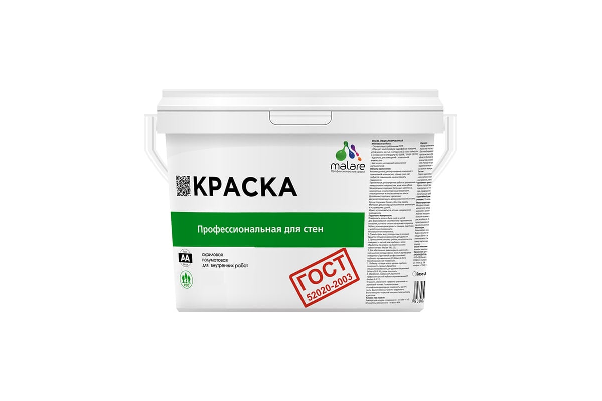 Все характеристикиКраска для стен и потолков в сухих помещениях MALARE ГОСТ производится на основе качественного российского сырья. Применяется для внутренних работ по деревянным и минеральным поверхностям, всем типам обоев.