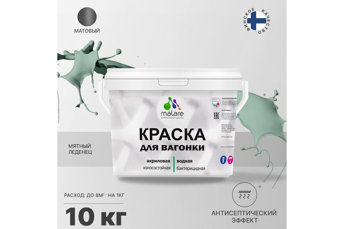 Краска для вагонки MALARE (с антисептическим эффектом; мятный леденец; 10 кг) 2036767697724