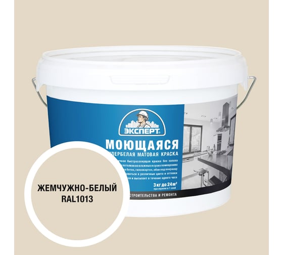 Краска моющаяся ЭКСПЕРТ цвет Жемчужно-белый 3 кг 34844 применяется для окраски стен и потолков в кухнях, ванных комнатах. Идеальна для структурных и стеклообоев. Обладает высокой степенью белизны и укрывистости. Очень хорошая стойкость к влажному истиранию. Очень экономичная в применении. Наносится на бетонные и оштукатуренные поверхности, гипсовые и гипсокартонные плиты, структурные и стеклообои.