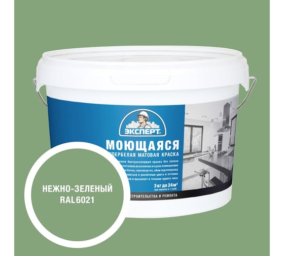 Краска моющаяся ЭКСПЕРТ цвет Нежно-зеленый 3 кг 34849 применяется для окраски стен и потолков в кухнях, ванных комнатах. Идеальна для структурных и стеклообоев. Обладает высокой степенью белизны и укрывистости. Очень хорошая стойкость к влажному истиранию. Очень экономичная в применении. Наносится на бетонные и оштукатуренные поверхности, гипсовые и гипсокартонные плиты, структурные и стеклообои.