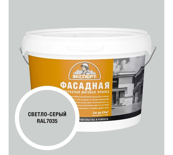 Краска фасадная Эксперт светло-серая 3 кг 34939