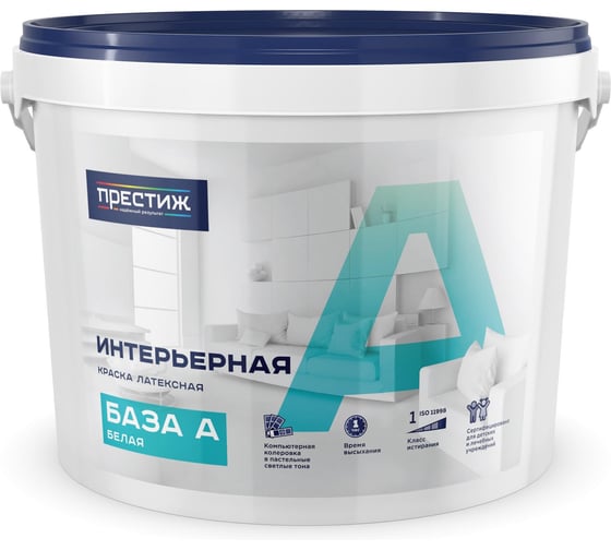Краска интерьерная латексная Престиж матовая, база A, белая, 0,9 л 281310
