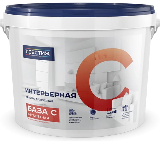 Краска интерьерная латексная Престиж матовая, база C, бесцветная, 2,7 л 281314
