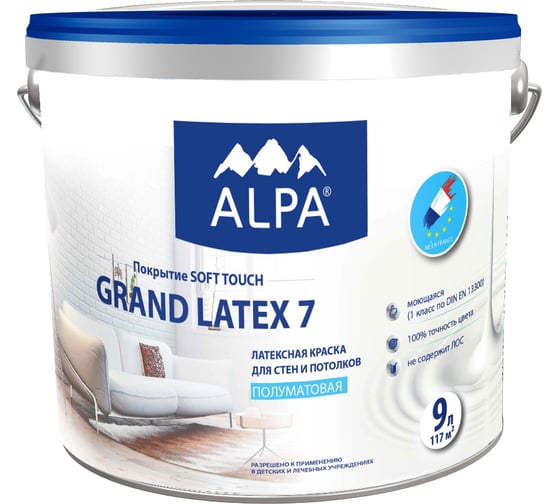 Краска латексная ALPA для стен и потолков Grand Latex 7 5 л (6,65 кг) 3488570011027