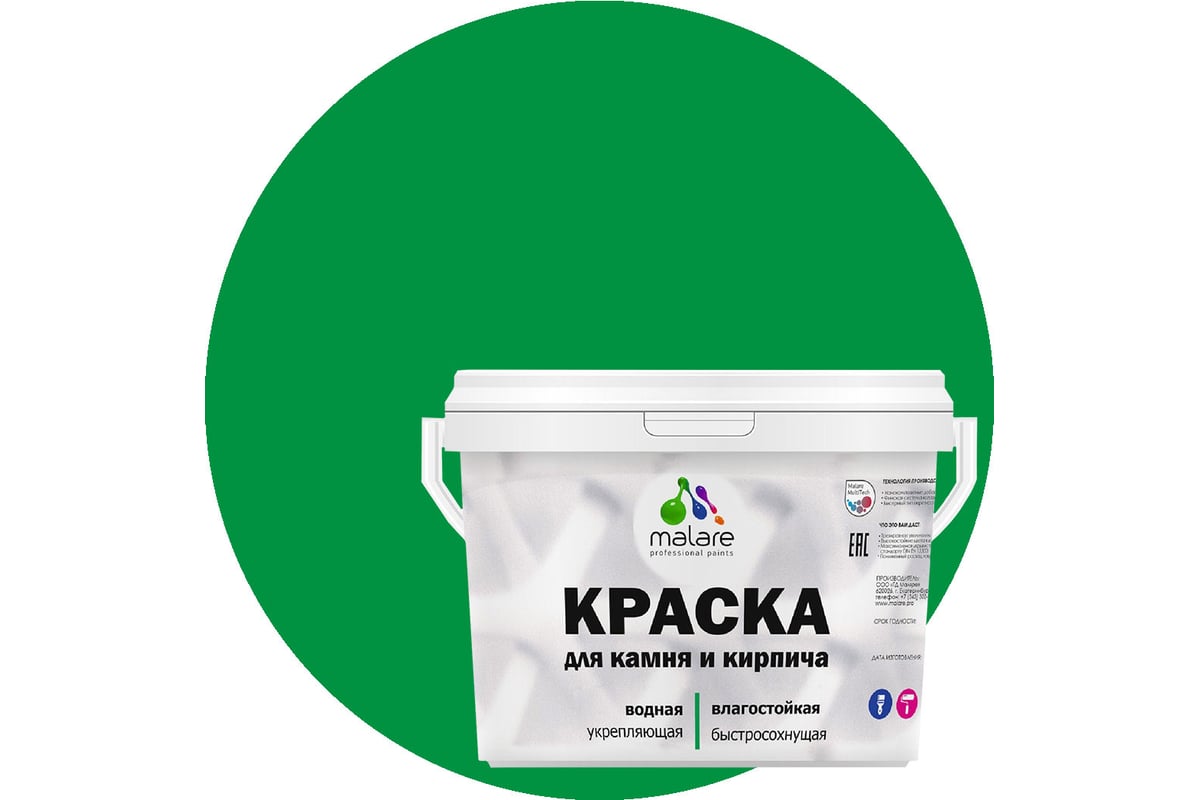 Краска MALARE для камня, кирпича, УФ-стойкая, быстросохнущая, матовая, 1 л - 1.3 кг - это профессиональная краска для окрашивания фасадов зданий, камня, кирпича и всех видов минеральных оснований.