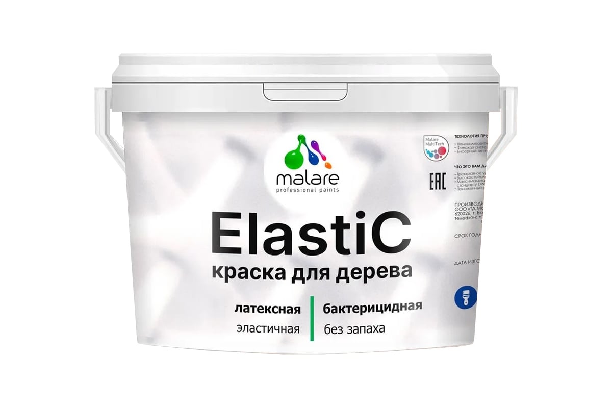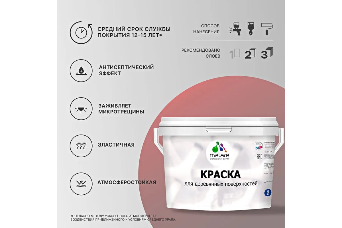 Краска MALARE Elastic для деревянных поверхностей, универсальная, с антисептическим эффектом, матовая, мармелад, 10 кг 2038119891910