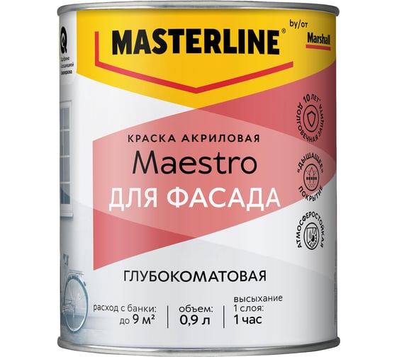 Краска Masterline by Marshall Maestro Фасадная Акриловая глуб/мат BW 0 50036131