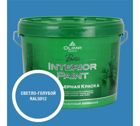 Краска экологичная OLIMP БЕТА для стен и потолков светло-голубая 10л 35498