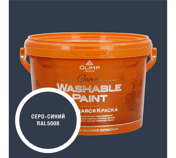 Краска ультрастойкая моющаяся OLIMP ГАММА для всех типов помещений серо-синяя 2,7л 35486