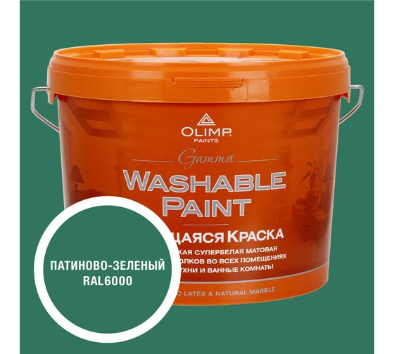 Краска ультрастойкая моющаяся OLIMP ГАММА для всех типов помещений патиново-зеленая 9л 35524