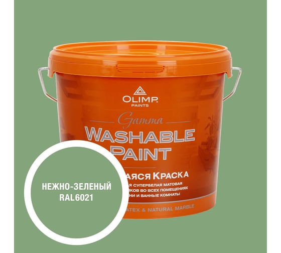 Краска ультрастойкая моющаяся OLIMP ГАММА для всех типов помещений нежно-зеленая 5л 35559