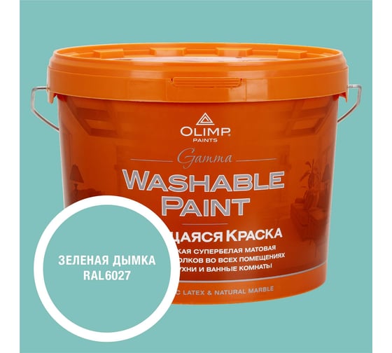 Краска ультрастойкая моющаяся OLIMP ГАММА для всех типов помещений зеленая дымка 10л 35587