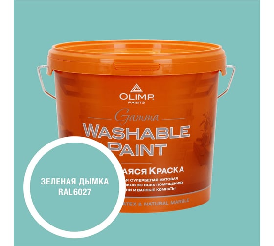 Краска ультрастойкая моющаяся OLIMP ГАММА для всех типов помещений зеленая дымка 5л 35586