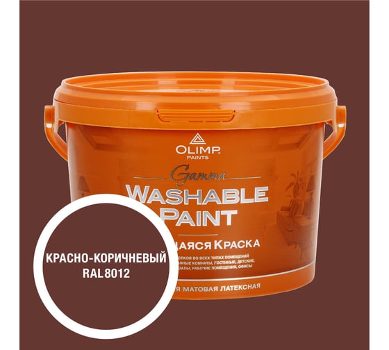 Краска ультрастойкая моющаяся OLIMP ГАММА для всех типов помещений красно-коричневая 2,7л 35718