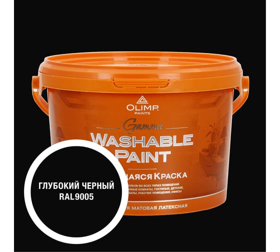 Краска ультрастойкая моющаяся OLIMP ГАММА для всех типов помещений черная 2,7л 35758