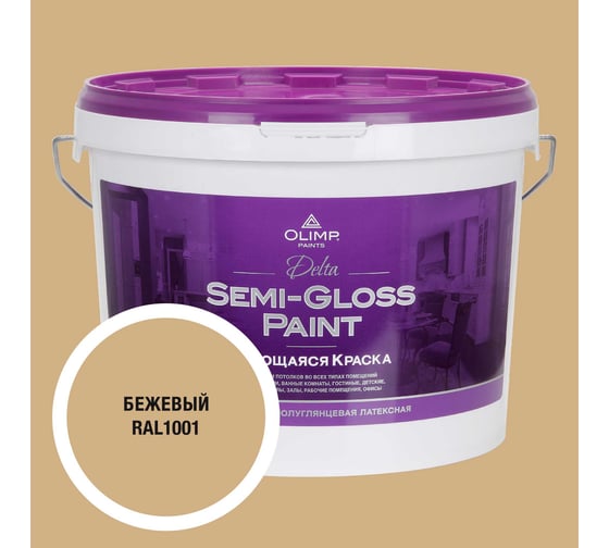 Краска моющаяся OLIMP ДЕЛЬТА для стен и потолков бежевая 10л 35343