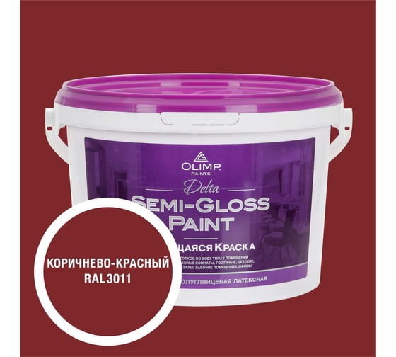 Краска моющаяся OLIMP ДЕЛЬТА для стен и потолков коричнево-красная 2,7л 35479