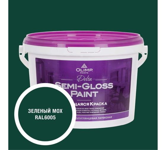 Краска моющаяся OLIMP ДЕЛЬТА для стен и потолков зеленый мох 2,7л 35536