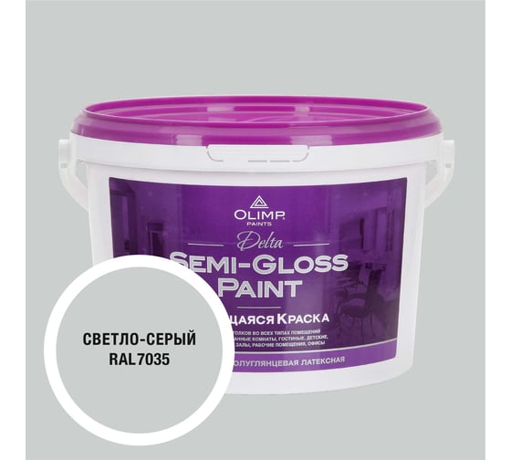 Краска моющаяся OLIMP ДЕЛЬТА для стен и потолков светло-серая 2,5л 35637