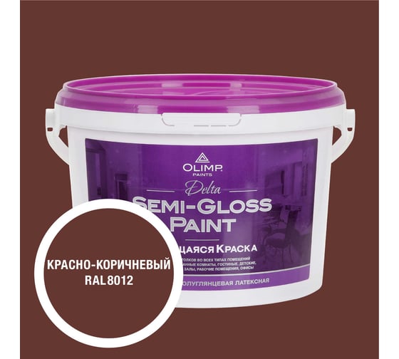 Краска моющаяся OLIMP ДЕЛЬТА для стен и потолков красно-коричневая 2,7л 35721