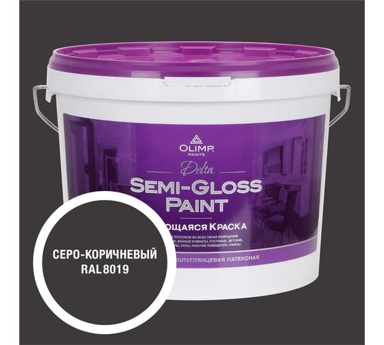 Краска моющаяся OLIMP ДЕЛЬТА для стен и потолков серо-коричневая 9л 35732
