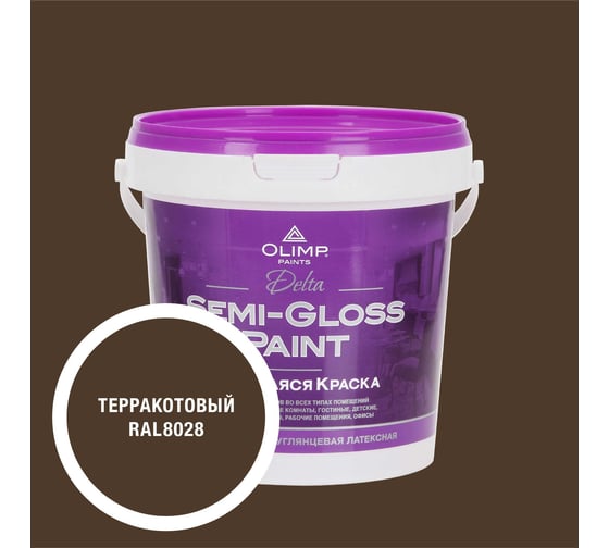 Краска моющаяся OLIMP ДЕЛЬТА для стен и потолков терракотовая 0,9л 35750