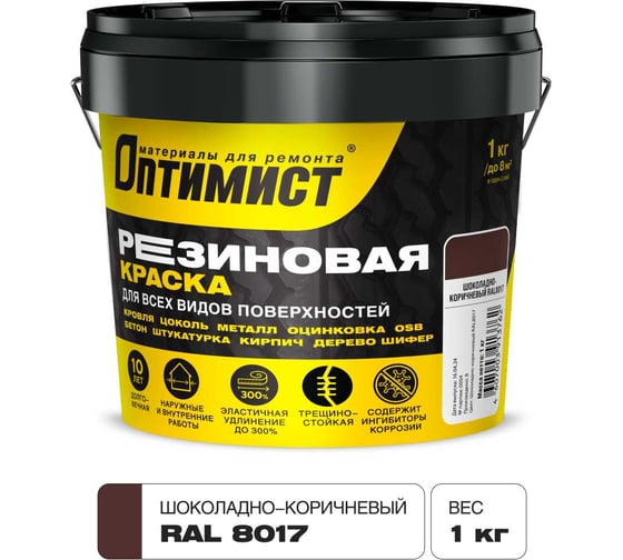 Краска ОПТИМИСТ F310 резиновая шоколадно-коричневая 1кг OPP298