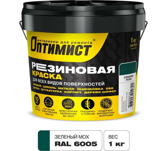 Краска ОПТИМИСТ F310 резиновая зеленый мох 1кг OPP315