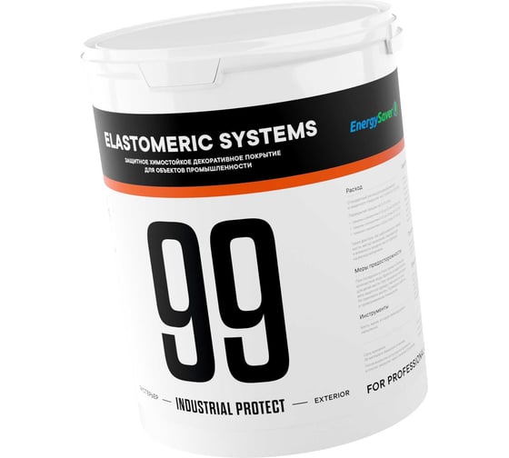 ELASTOMERIC 99 Industrial Protect — профессиональное защитно-декоративное акриловое покрытие для наружных работ на объектах промышленности и инженерных сооружениях. Краска предназначена для защиты бетонных, кирпичных и оштукатуренных поверхностей, эксплуатируемых в агрессивных условиях и при высоких механических и химических нагрузках.