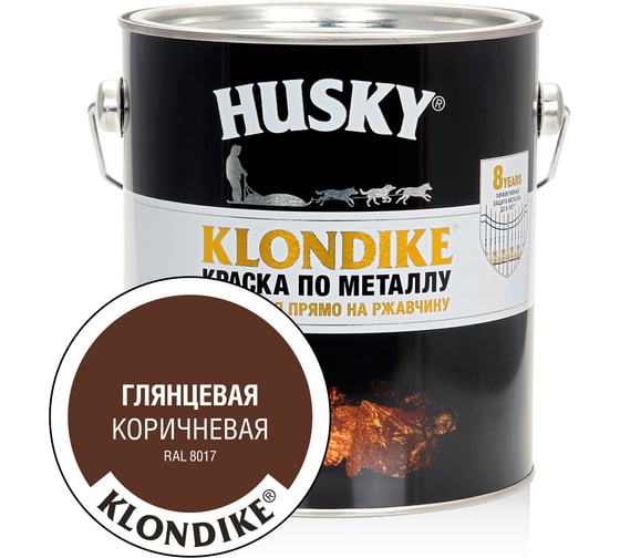 Краска по металлу HUSKY KLONDIKE (глянцевая; коричневая RAL 8017; 2.5 л) 25624