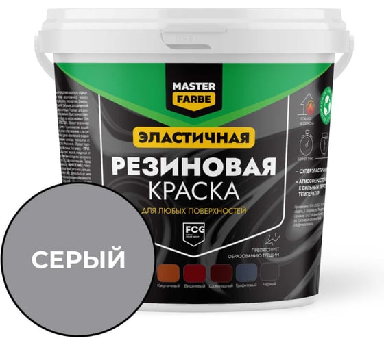 Краска резиновая MASTERFARBE Серый 1кг 4631179297883