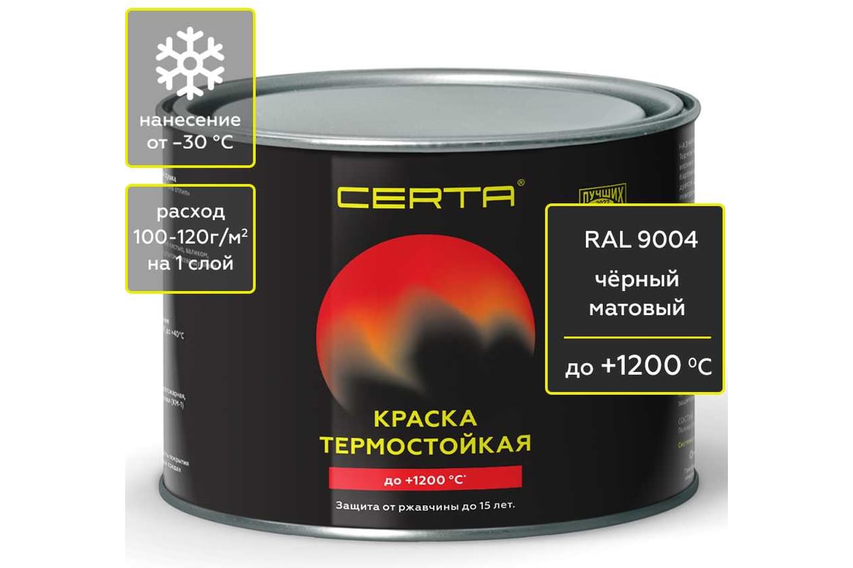 Краска термостойкая антикоррозионная Certa до 1200С, черный матовый RAL 9004, 0,4 кг CPR00118