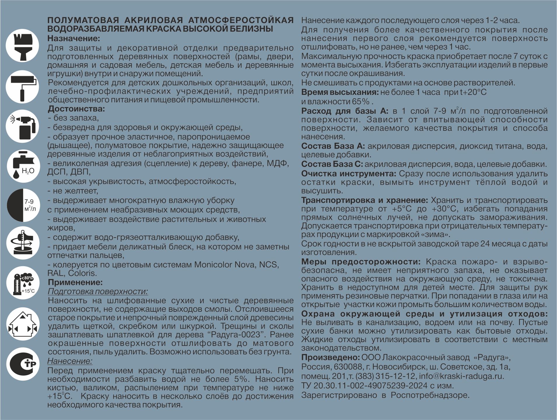 Специально подобранная акриловая основа обеспечивает высокую адгезию к дереву и другим деревянным покрытиям, позволяя избежать отслаивания даже при продолжительном использовании мебели или декора под воздействием различных факторов окружающей среды. Матовый финиш придаст элегантности и выдержанности любому интерьеру без излишнего блеска.