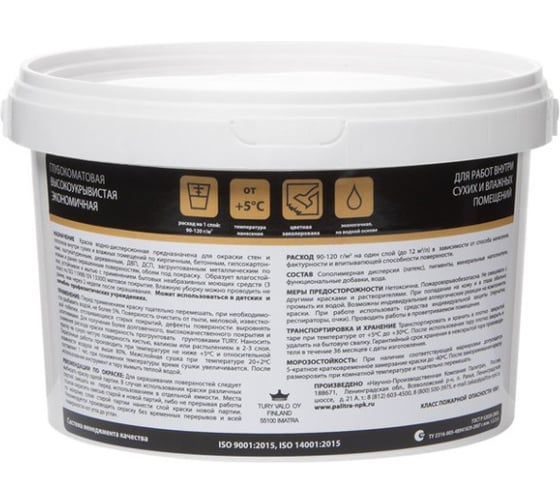 Акрилатная водно-дисперсионная влагостойкая краска применяется для внутренних работ (в т.ч. в помещениях с повышенной влажностью) по новым подготовленным и ранее окрашенным поверхностям: по гипроку, обоям под окраску, кирпичным, бетонным, оштукатуренным, деревянным, ДВП, ДСП, загрунтованным металлическим и другим поверхностям (кроме полов). идеальна для окраски мест общественного пользования: (МОП), кабинетов, залов, кухонь, ванных и туалетных комнат, подходит для радиаторов, предварительно загрунтованных металлических поверхностей.