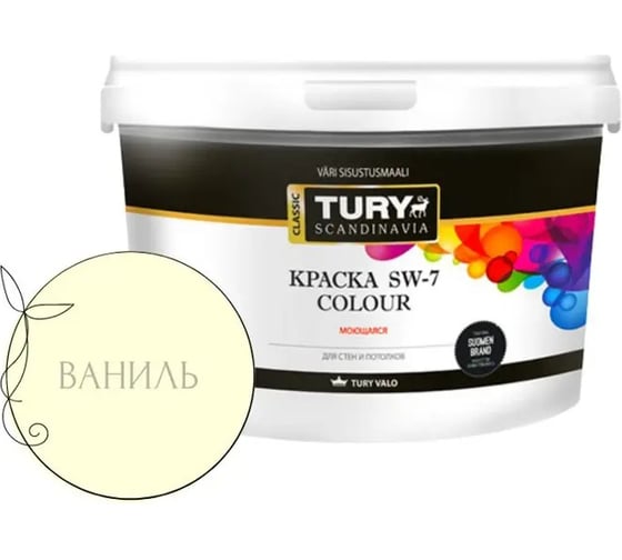 Краска водно-дисперсионная TURY SW-7 Color моющаяся, ваниль 01-01, 2.4 кг 00020015932