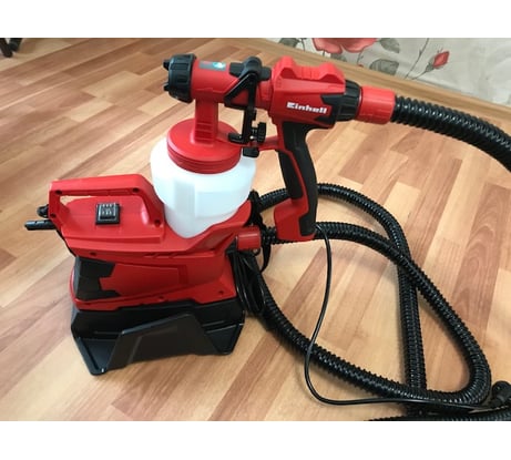 Выбирали (главный эксперт жена, для себя подбирала) из трех аналогичных моделей (Wagner, Зубр). Wagner, ожидаемо отличного качества. Но, цена .... И, что неприятно удивило, никакой баланс пистолета. Если еще добавить 1,3 кг краски, вообще критично. шланг еще самый маленький, 1.8 м. Зубр, удивил совсем плохим качеством (на вид дешевый пластик) и никакой эргономикой). Еще и емкость всего 0,8 л. Einhell, средний в ценовом диапазоне, по качеству сравним с Wagner.В комплекте два сопла, (у остальных по одному) очень гибкий (в сравнении с конкурентами) шланг. Который кстати, самый длинный 3,5 м. И, эргономика пистолета!! Пистолет, при работе можно ставить не только в специальное отверстие, но и просто на ровную поверхность. Проверил в работе с обычной водой. Шумит умеренно, как обычный пылесос. Все струи видны. Регулировка легкая. Шланг фиксируется быстро и надежно Осталось проверить с красками!