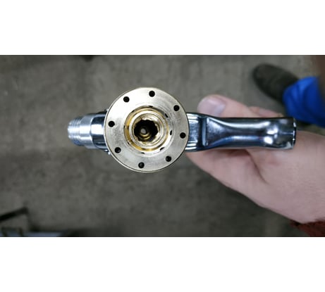 1)Плохо работает регулировка воздуха - на минимуме клапан после отпускания курка не закрывается. 2)На новом пистолете испорчен шестигранник на воздухораспределительной головке (см.фото). Пистолет в заводской консервационной смазке, т.е. кто-то купил его испоганил шлицы, приложив для откручивания силу вместо головы, и сдал обратно. Обнаружилось это спустя 2 недели после покупки, когда достал его и решил проверить.