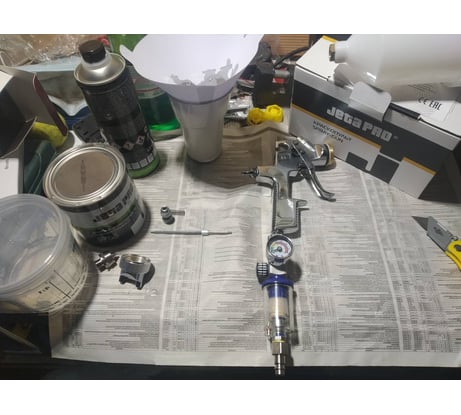 Отличный распылитель. Брал для гаражной покраски автомобиля. Для нанесения грунтов подходит идеально. Правда я купил для него сопло на 1,4 мм.