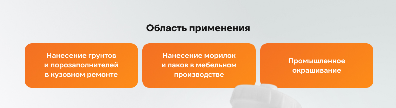 - Перенос материала на окрашиваемую поверхность (более 80% для грунтов, и 70% для базы и лака)