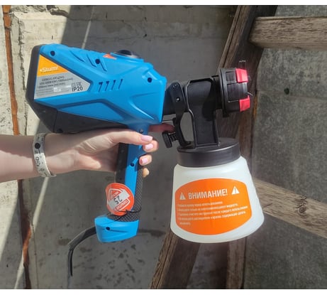 Покупал для нанесения универсальной пропитки Pinotex Universal 2 в 1 на евровагонку в двухэтажном доме. Пропитку разбавлял обычной водой (до 30 секунд через вязкозиметр по мануалу) . За два дня работы с утра и до вечера - полностью покрыл два этажа (около 300 м2 площади стен и потолков) Считаю что краскопульт полностью окупился, так как кистью покрывал бы в разы дольше и сложнее. Были участки где с трудом дотягивался пультом, кисточкой пришлось бы городить более массивные леса. Самое главное - давать компрессору остывать, и вовремя чистить фильтр, засоряется он быстро. Я вырезал еще пару запасных фильтров из губки для мытья посуды и просто менял их. Единственный недостаток - шланг. У меня сразу лопнуло соединение с фланцем. Но моток черной изоленты решил вопрос. В общем и целом - для домашнего использования рекомендую!